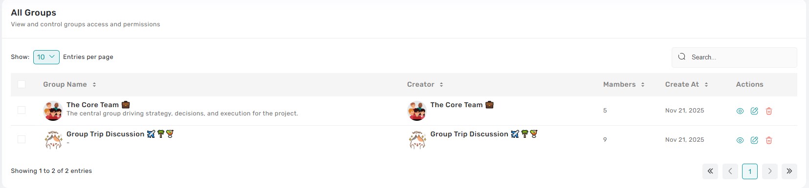 3. All Groups List View