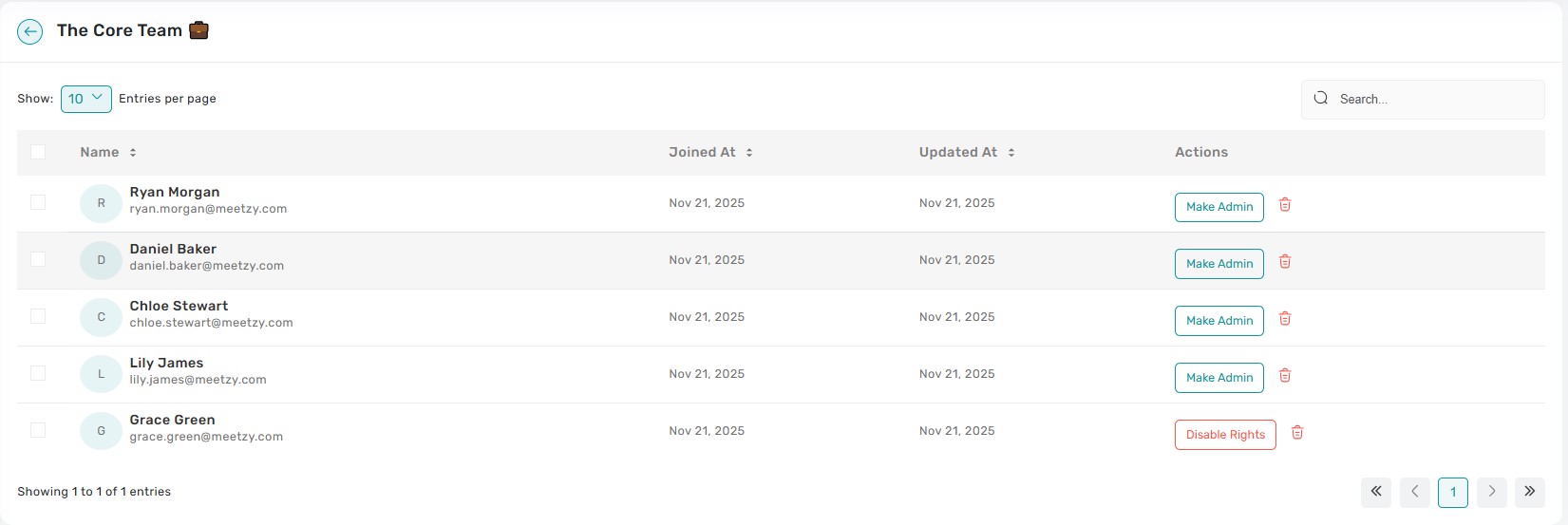 View Members: Opens a modal listing members with email, avatar, and admin badge. From here admins can promote/demote, edit member info, or remove them; confirmations ensure intentional changes.