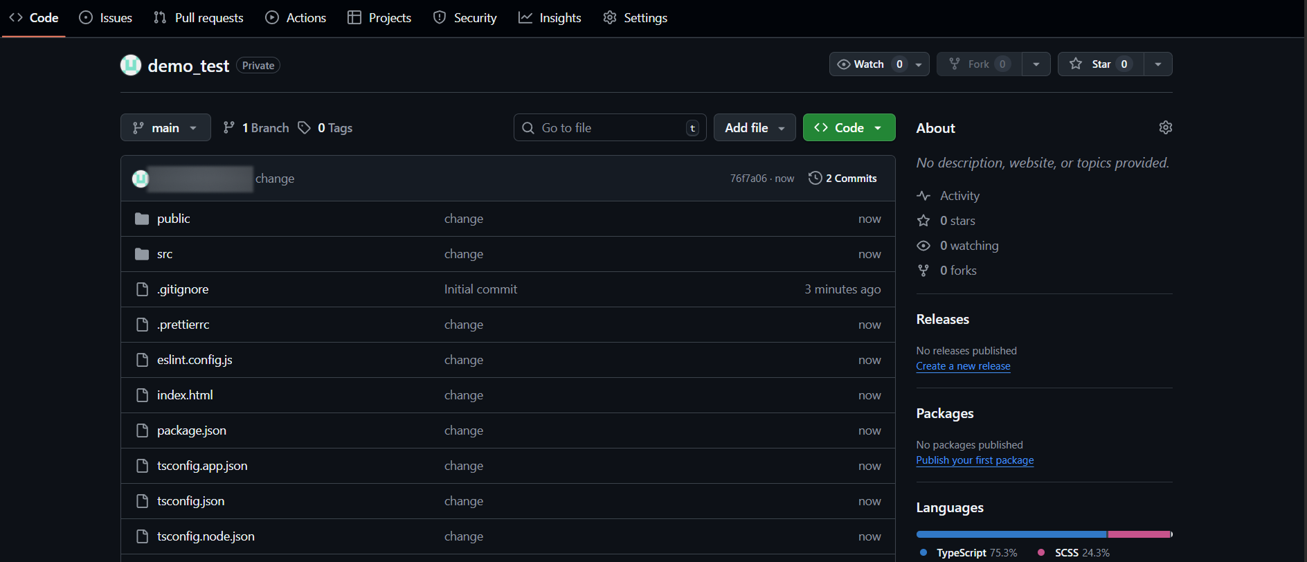 If you want which file changes are on the latest updated version then you have to manage the git repository by yourself. You can give same name as we have given meetzy-admin or give your name like demoTest. For Example we have create project with name demoTest.