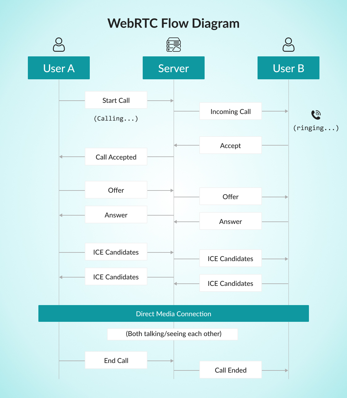 Peer-to-Peer Connection: Direct link between users (no central server for media).